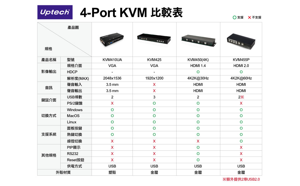 可透过面板按键、键盘热键或切换软件来切换计算机。 |