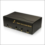 连接2组VGA画面与3.5mm音讯,择1组输出至VGA屏幕上显示及3.5mm喇叭播放。 |