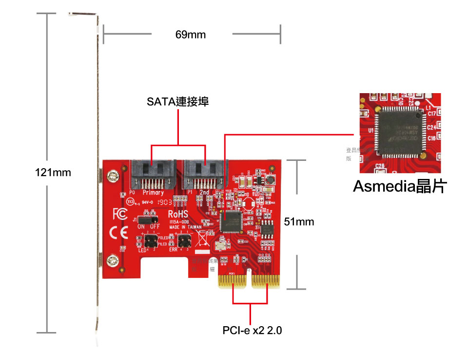 提供 2 个标准Serial ATA 7-Pin连接端子 |