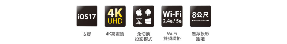 | Android | 需具备支持Miracast的智慧手机/平板 (Android 4.4~11) |
