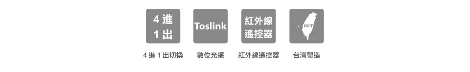 提供 4 组光纤 (Toslink) 数字音源输入端子