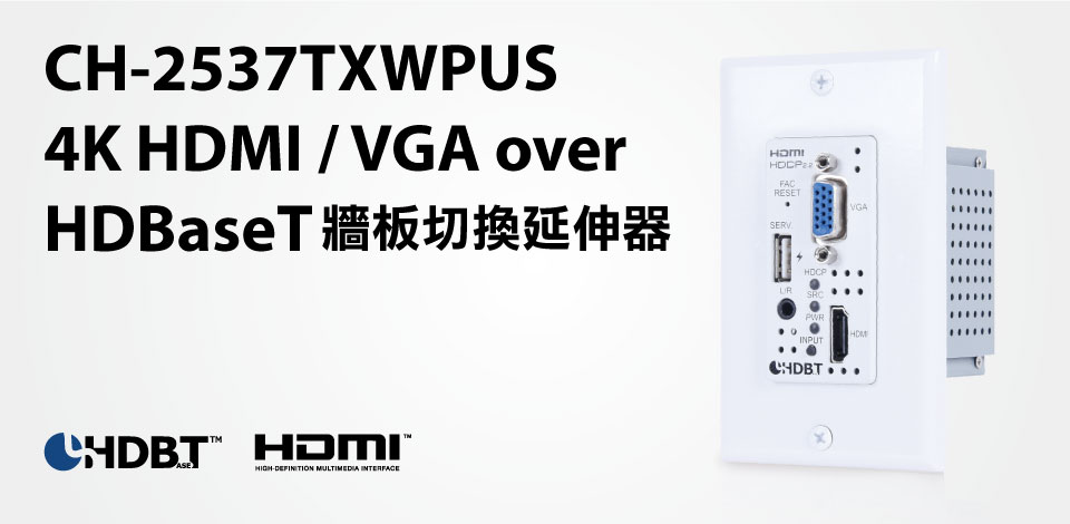 这款 Wallplate Switcher 是一款 HDMI 和 VGA 开关,具有音频嵌入和 HDBaseT 输出,用于美国大小墙板设计的外壳。