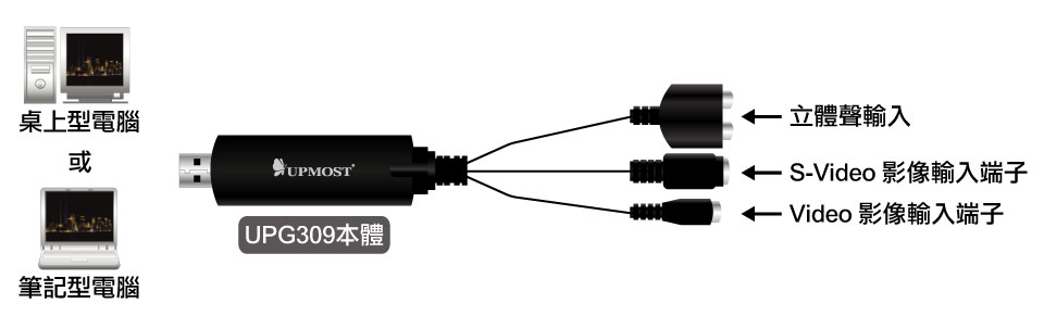 | UPG309本体 ×1 | USB 延长线 × 1 | 驱动程序光盘 ×1 | 中文快速安装说明 x1 | 产品保证卡x1 |