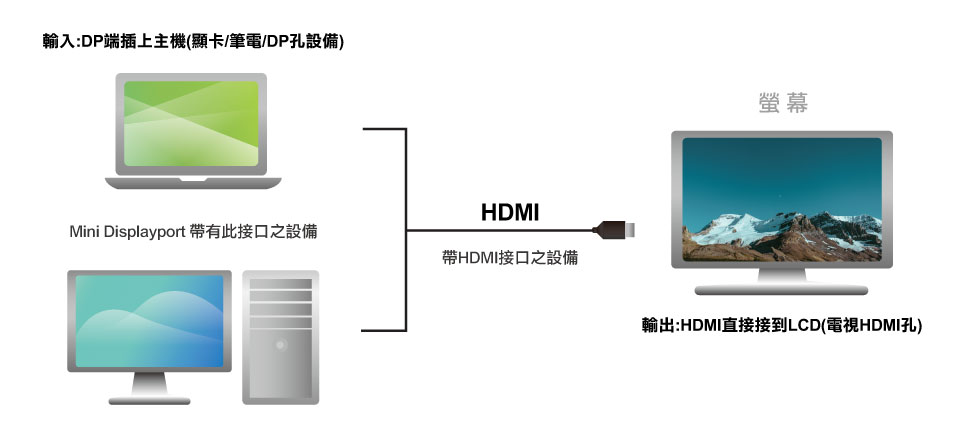 1.本产品仅支持单向转换Mini Displayport(DP)转HDMI,不支持HDMI转Mini Displayport(DP)。