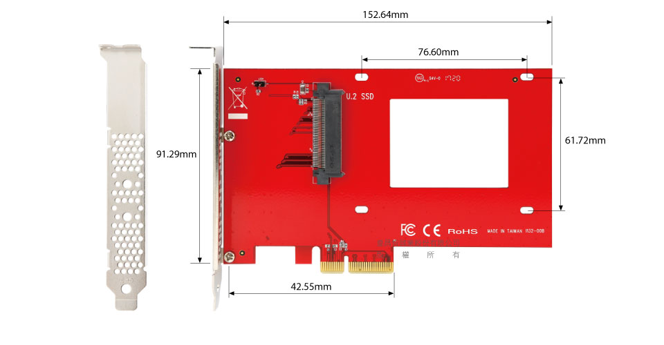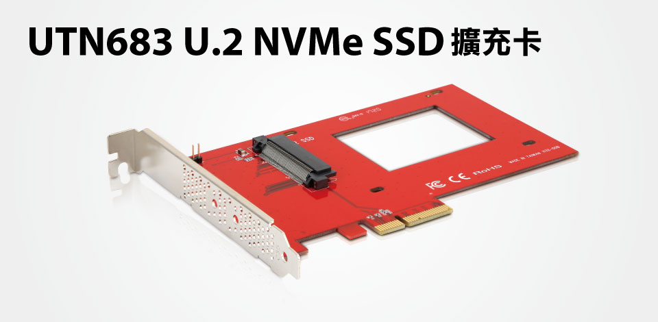 | • | PCIe x4插槽接口支持PCIe NVMe U.2 2.5吋固态硬盘转接扩充卡 |