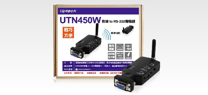 UTN450W 无线 to RS-232传输器