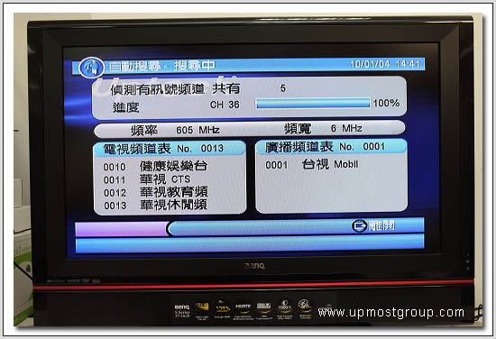 | 11.接上電視先按遙控器上的『自動掃描』來掃描數位電視頻道,會收到16個頻道含一台數位廣播, 不過因為這台定位是平價機種,就無法接收那唯一一台的HiHD高畫質頻道了。 |