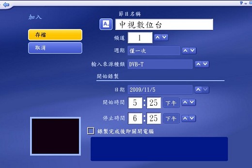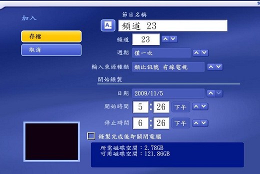 | 15.『視訊』選項則是能簡單剪接錄製的電視節目或其他影片,也能將影片燒錄到光碟。 | ||||