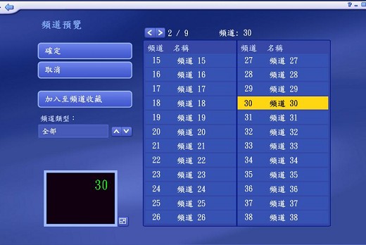 | 21.此為數位電視的『頻道預覽』,左下方預覽有數位電視收訊格數顯示。 | ||||