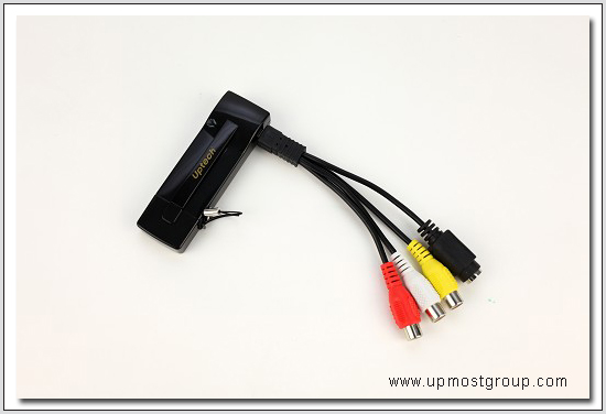 | 7.AV/S輸入端子轉接線是連接電視棒側邊位置,可外接VHS、V8、影音播放機等器材做觀看或 轉錄成數位MPEG-2檔。 |