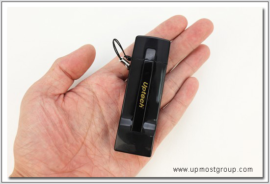 | 5. Uptech Hybrid TV HD 2雙頻電視棒本體,亮面塑膠外殼,Uptech品牌標示為金色 (Uptech Hybrid TV HD為白色)。 |