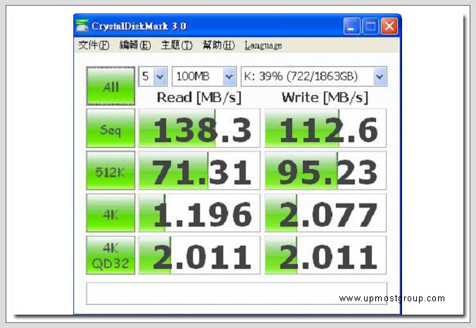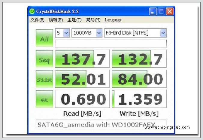 | 14.至於SATA-III硬碟的測試,下圖為Uptech原廠提供的測試數據,使用硬碟為WD1002FAEX,此款硬碟為WD第一款SATA-III 1TB規格的硬碟。 | |||||||||||||||||