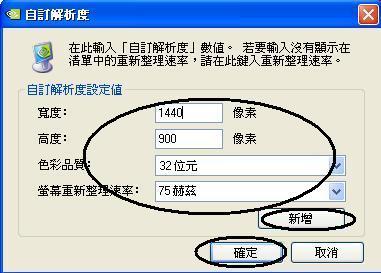 | 5.螢幕解析度即出現新增的解析度可調整了,調整後按套用即可 | ||