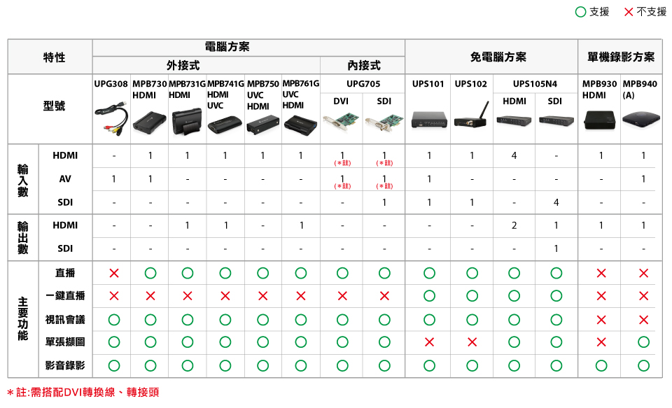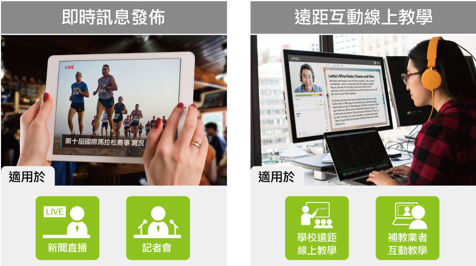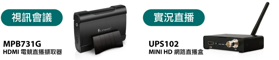 UPMOST擁有多款直播擷取產品,可使用桌電、筆電來將現場畫面,透過網路來直播,適用多種環境,符合各種使用需求。