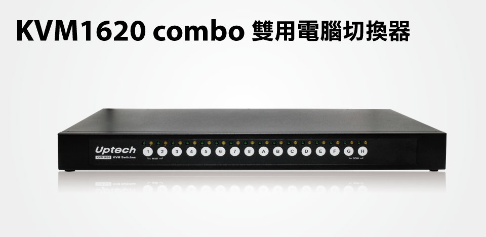 KVM1620 combo是一款 PS/2 & USB 機架型雙介面 KVM 電腦切換器,提供一組控制端( 螢幕、鍵盤、滑鼠 ) 同時管控多台電腦主機,控制端與電腦端的鍵盤及滑鼠,可以任意選擇使用 PS/2 或 USB 介面,並支援 Windows、Linux、Mac、Sun Micro System 等作業平台,可透過面板獨立按鍵、鍵盤熱鍵,或是 OSD 選單來切換控制電腦,最適合企業機房管理使用。