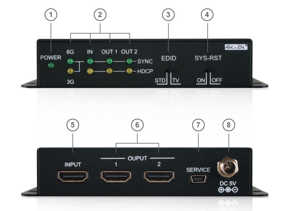 具備1個HDMI輸入埠與2個HDMI輸出埠 |