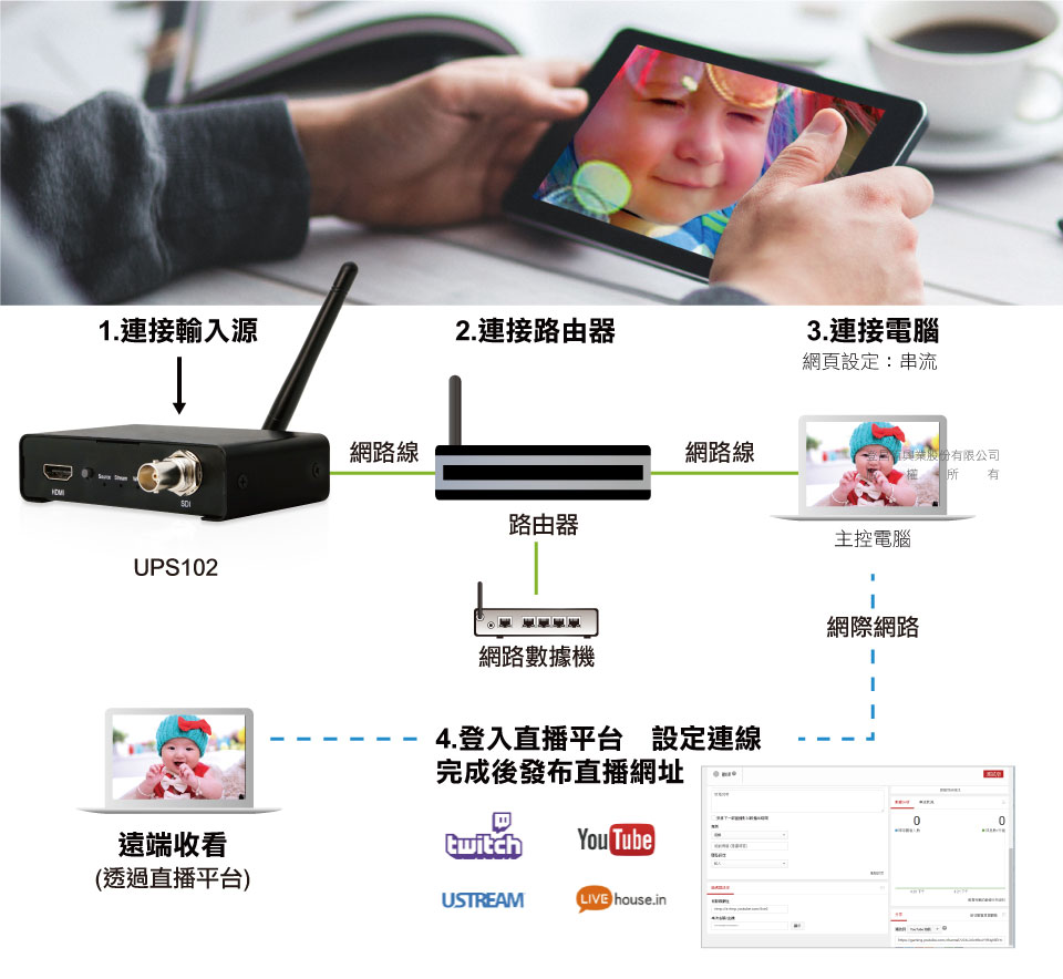 | ※ | 請注意,若UPS102只串流主碼流時,其串流上限為1080P60,若串流出主+子碼流時,主碼流上限為1080P30,子碼流為960*540P30 |