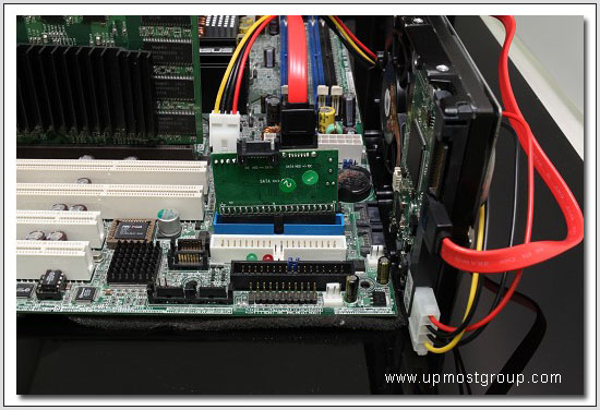 | 7. 安裝也很簡單,UTN651為 IDE/SATA雙向的轉換器,可直接接至主機板 IDE埠上,SATA裝置 連接至 UTN651的SATA接頭即可讓SATA裝置裝於主機板IDE埠 (IDE 僅能連接一組的SATA裝置 )。 |
