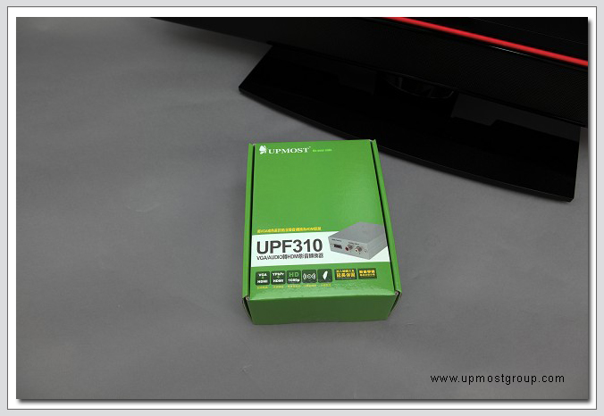 | 1.UPF310外盒,和他的兄弟UPF300包裝長很像,不同的是UPF300是將HDMI轉成VGA/色差,UPF310是將VGA/色差轉換為HDMI,兩者的作用剛好相反。 | ||||