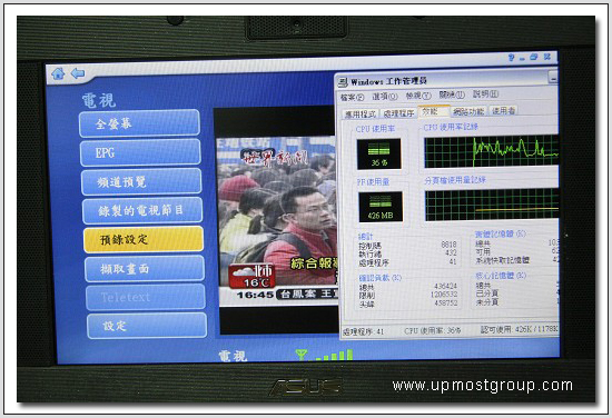| 13. Uptech Digital TV 在 EeePC 使用率才3X%,CPU使用率在EeePC算是相當低。 | ||||